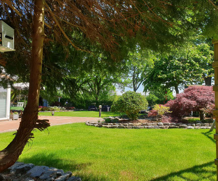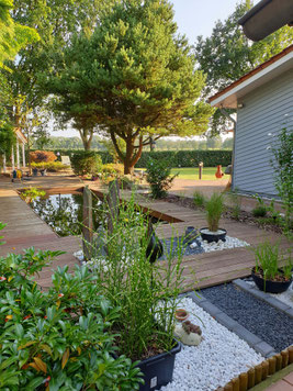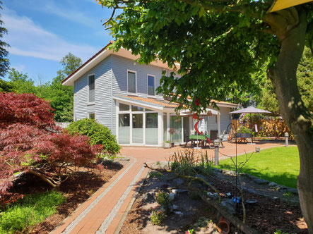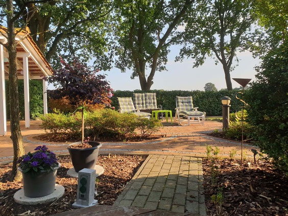 Mitten zwischen drei Seen, Wäldern und einem Erholungsgebiet im Ammerland, im Dreieck von Varel, Oldenburg und Westerstede, liegt die Auszeit-Oase am Waldrand mit Blick auf die freie Wiese. Das Grundstück ist ein kleines Paradies von ca. 1100 qm und komplett eingezäunt.